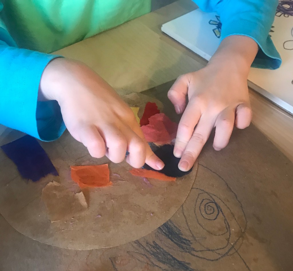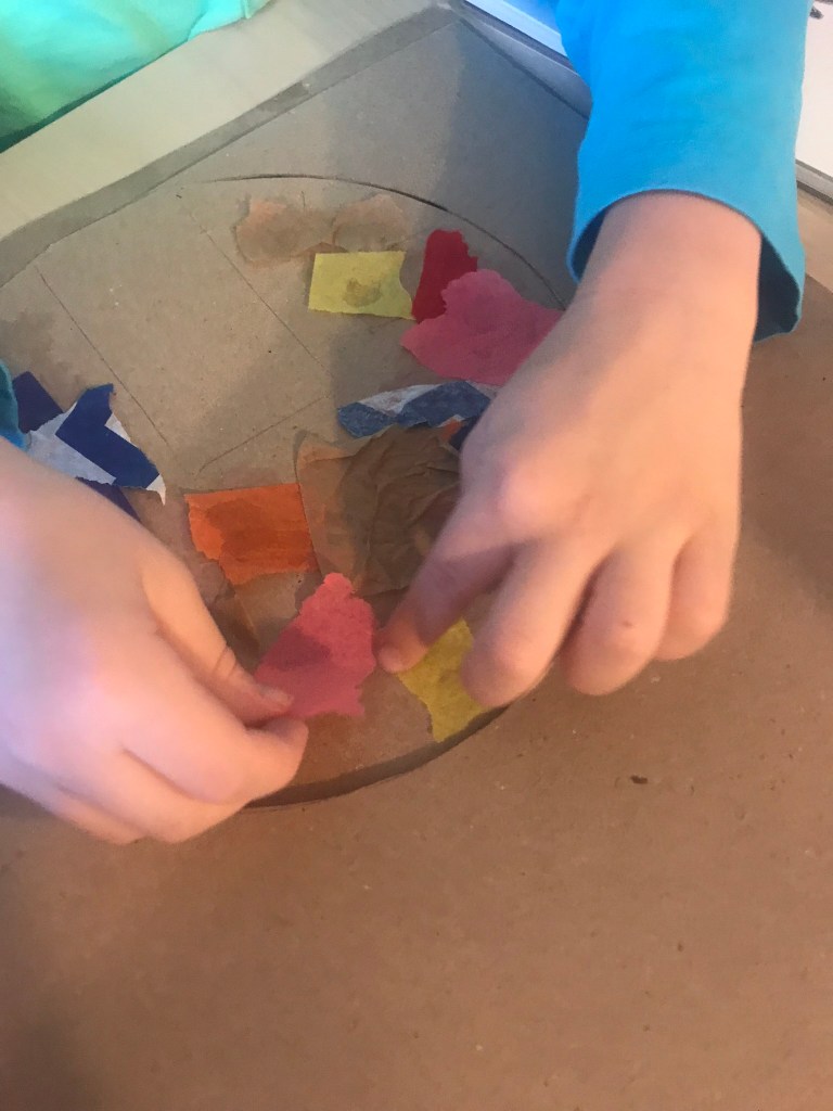 Tissue paper can be laid flat or crumbled up. Again, child’s choice.