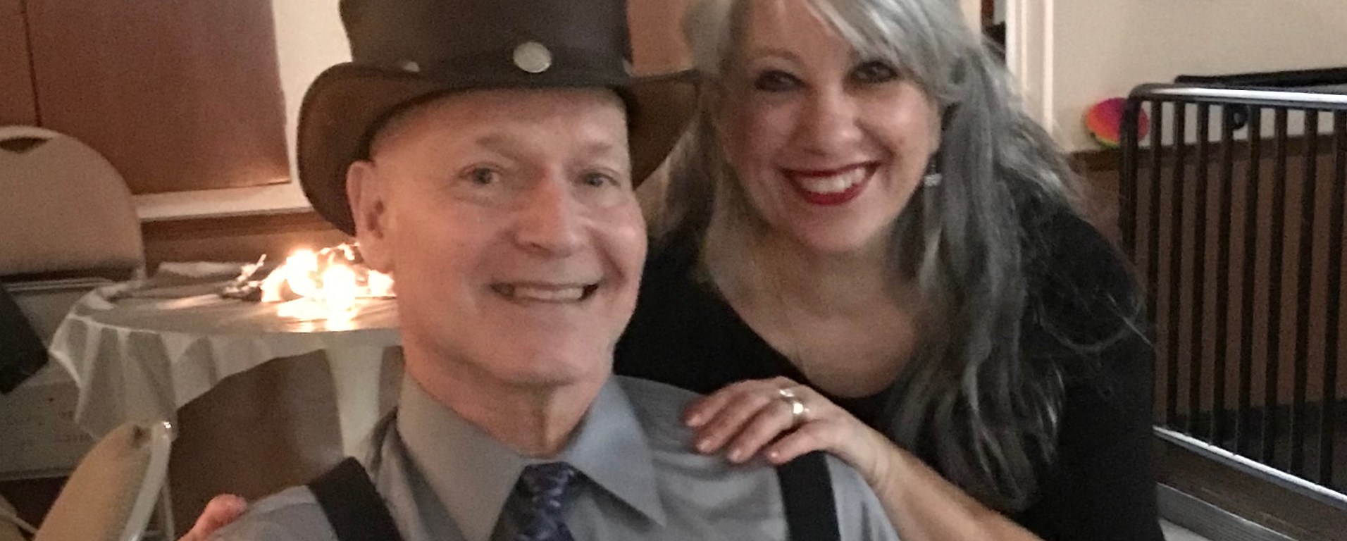 We practiced for several weeks, whenever Arthur felt up to it. Some days, he lacks the energy to do more than take care of his personal needs. We practiced several times a week, usually 3 or 4 takes at a time. We took rehearsal slow, learning the dance and trying to have fun while doing it! When we knew it as well as we could, we taped our dance.