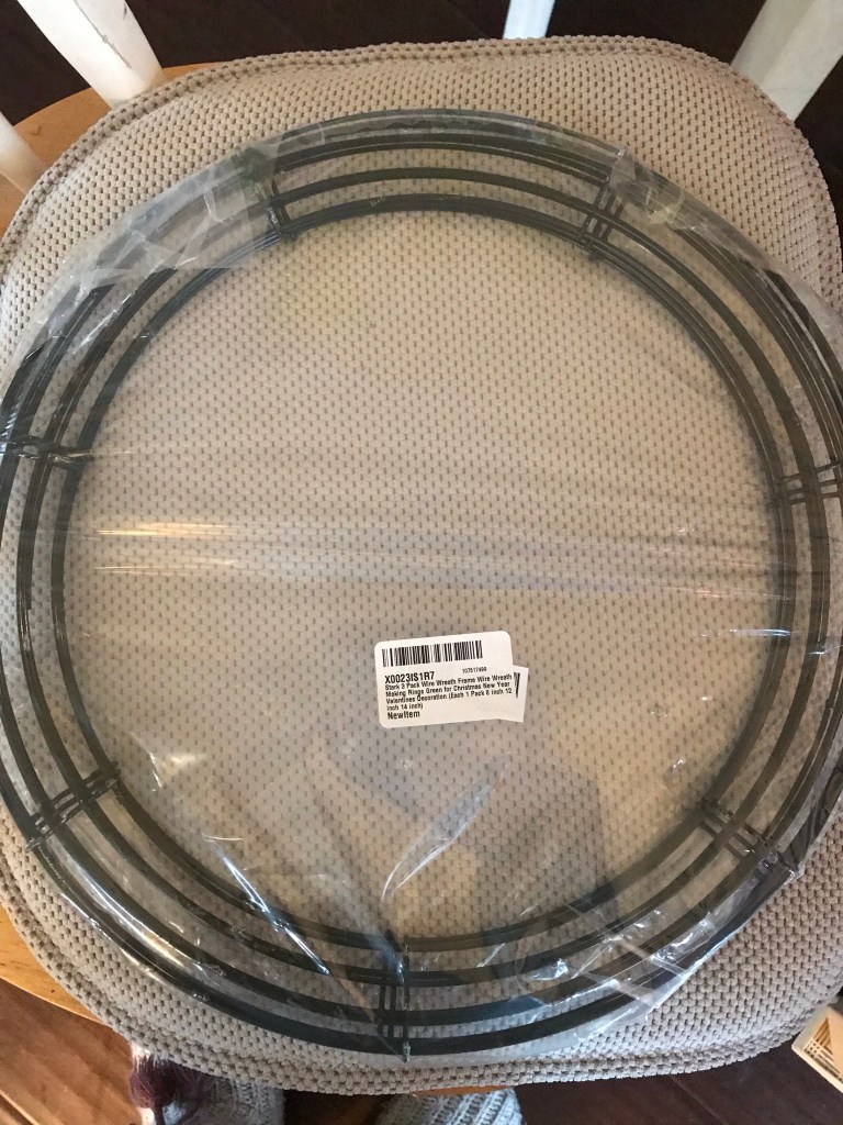 4. Take a pipe cleaner and wrap it around the center, then turn the wreath over and tie it to the back of the wire wreath. I wrapped the pipe cleaners around two of the rungs for stability. I also staggered them top, middle and bottom rungs.