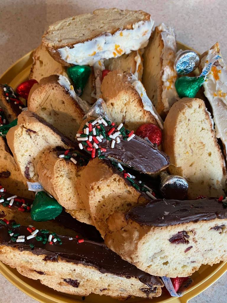 Biscotti reminds me of my Italian grandmother Philomena. My dad and I would visit her in the nursing home in Philadelphia. I would get a cup of tea for my grandmother and my dad would dunk the biscotti in the tea and feed it to my grandmother. Biscotti are made for dunking! They come in so many flavors and biscotti dipped in chocolate is one of my favorites!
