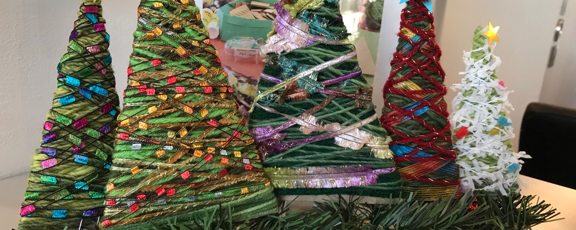 - When the tree is wrapped, add a dot of glue to the end of the yarn.
