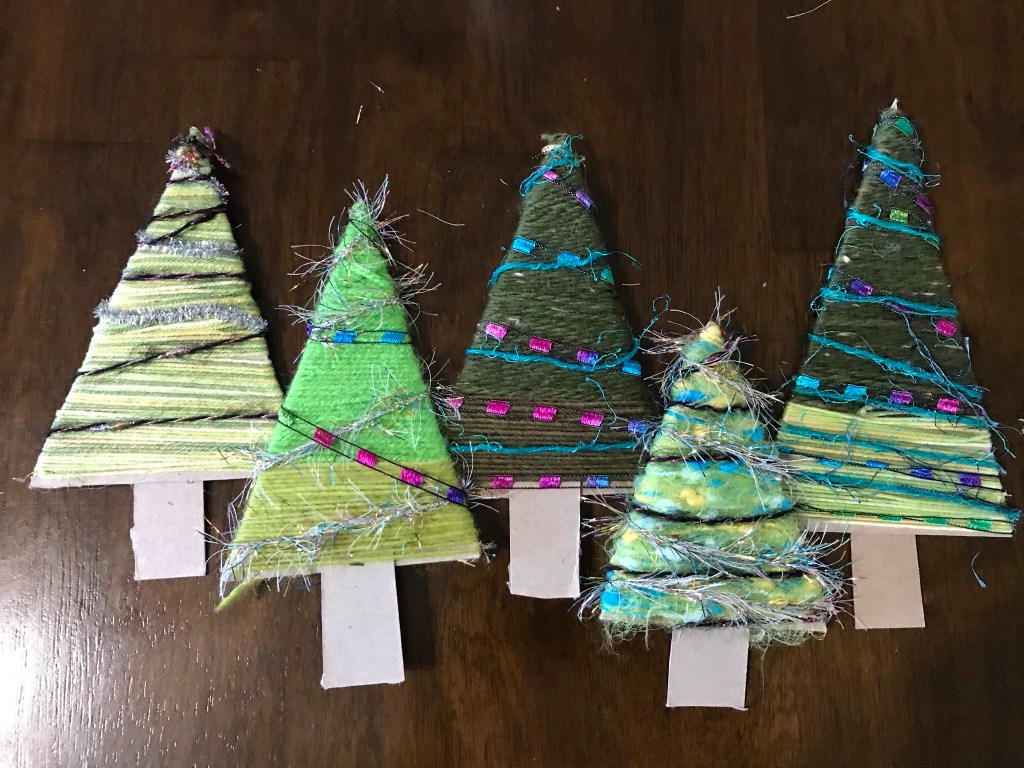 I cannot take credit for this idea! That goes to Delaplaine Arts Center in Frederick, Maryland. And what a great idea it is! As soon as I saw the cute tree display, I knew I had to do this with my grandkids.