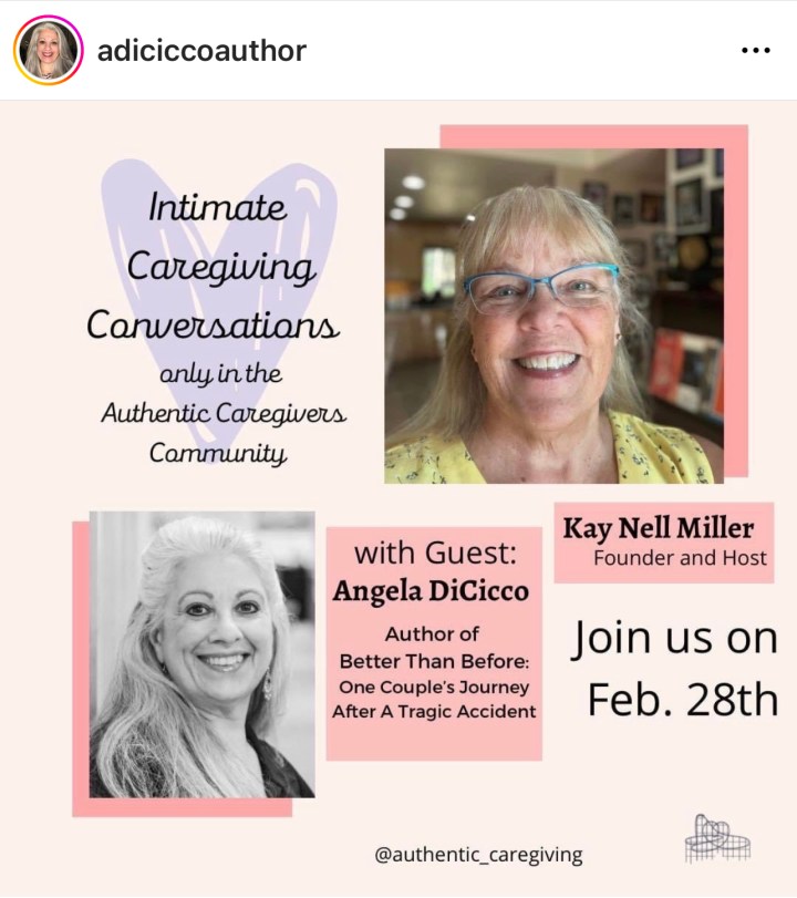Join us today for a raw, honest talk about caregiving, life with a paraplegic, and my book! I’m sure you’ll hear something new and interesting!